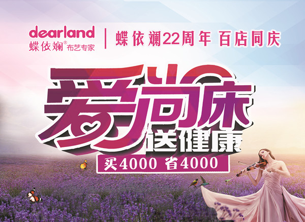 在蝶依斓22周年庆之际,焕新推出2016“爱尚床,送健康”——线上线下,百店同庆感恩活动,不要五毛钱的优惠力度,唯有“买4000省4000”,才能不负蝶依斓22周年庆之名。仅需1888元,原售5888元的床和床垫CP带回家,优惠得不要不要的!