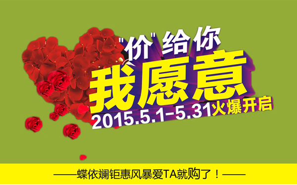五一欢乐时光即将到来,“蝶依斓天猫旗舰店5.1任性购”许你一个欢乐的假期,小伙伴们,赶紧约起来吧!