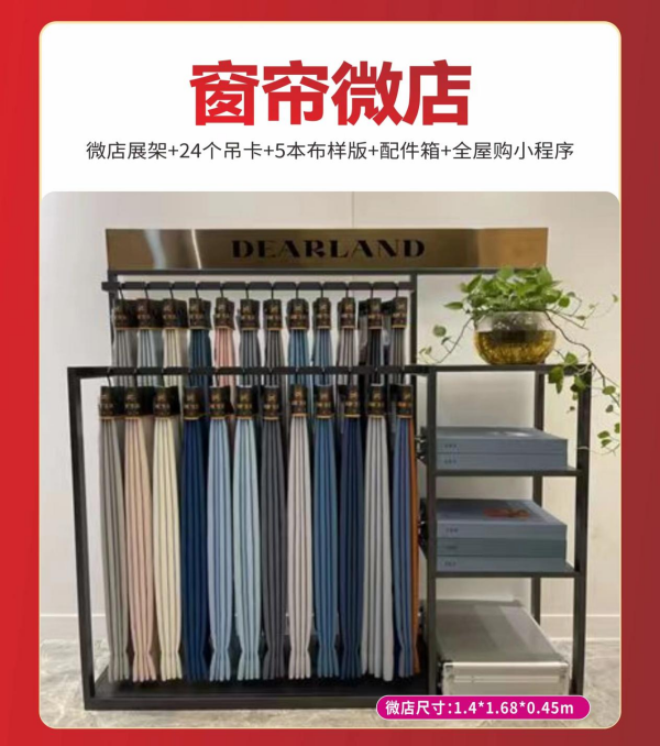 窗帘微店(展架1.4*1.68*0.45+24个吊卡+5本布样版+配件箱+全屋购小程序)