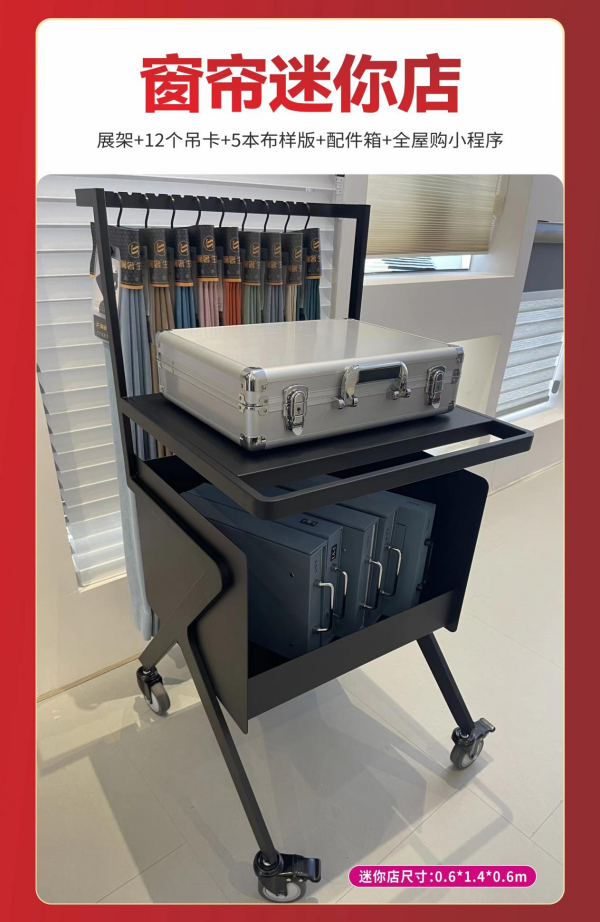 窗帘迷你店(展架0.6*0.6*1.4+12个吊卡+5本布样版+配件箱+全屋购小程序)