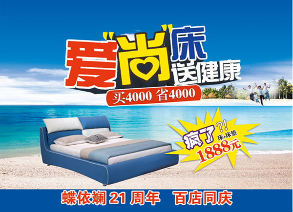 为感谢广大客户对蝶依斓品牌的厚爱,蝶依斓公司于7月11日发起“爱尚床,送健康”大型感恩回馈活动。此次活动不仅力度空前,更为重要的是,公司借店庆活动之机,采取别出心裁的方式,引领客户积极开展慈善活动,收到了良好的效果。
