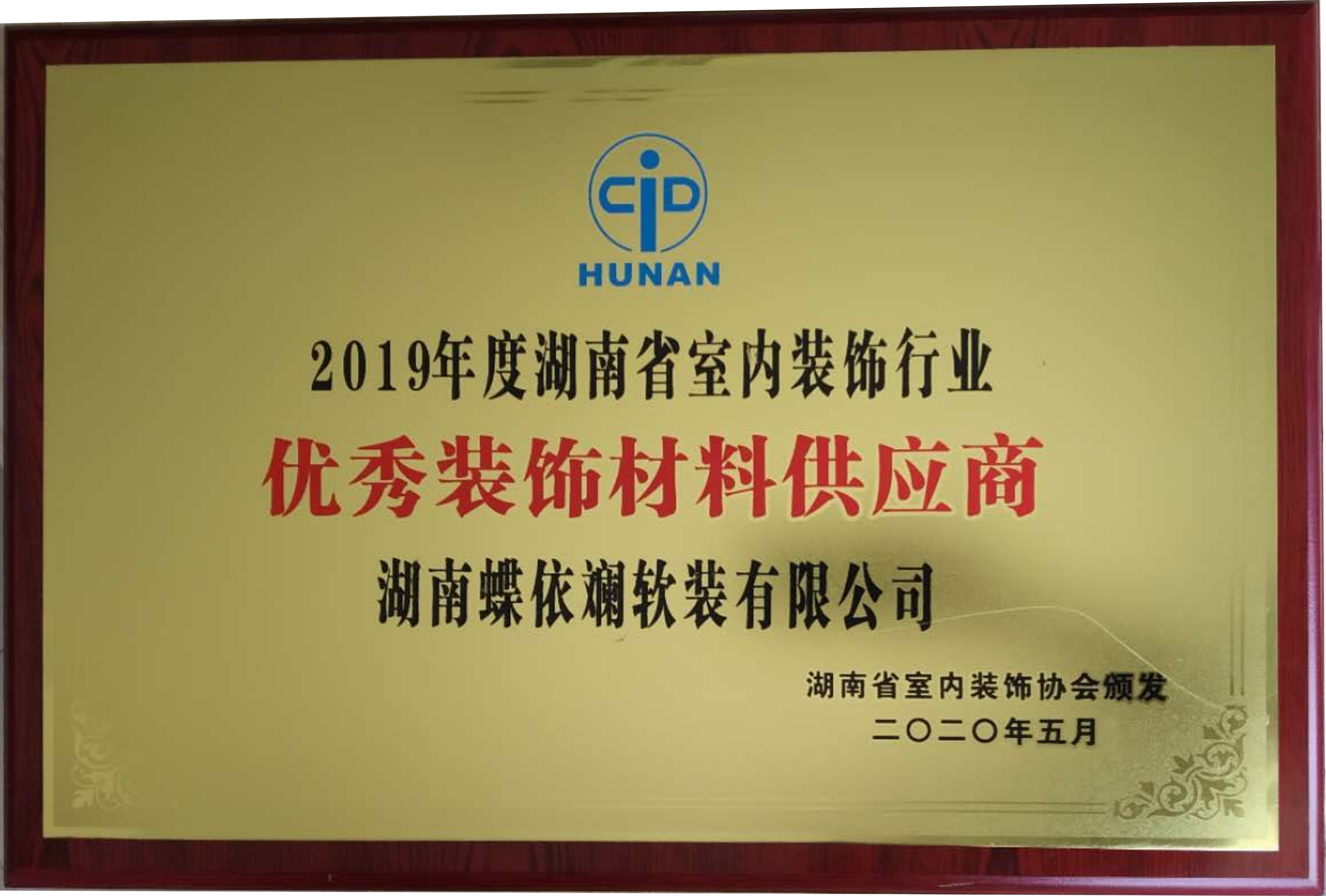 蝶依斓荣获2019年度湖南省“优秀装饰材料供应商”