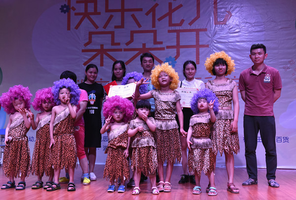 蝶依斓、康琪壹佰、天机巧三家企业代表与孩子们及工作人员合影
